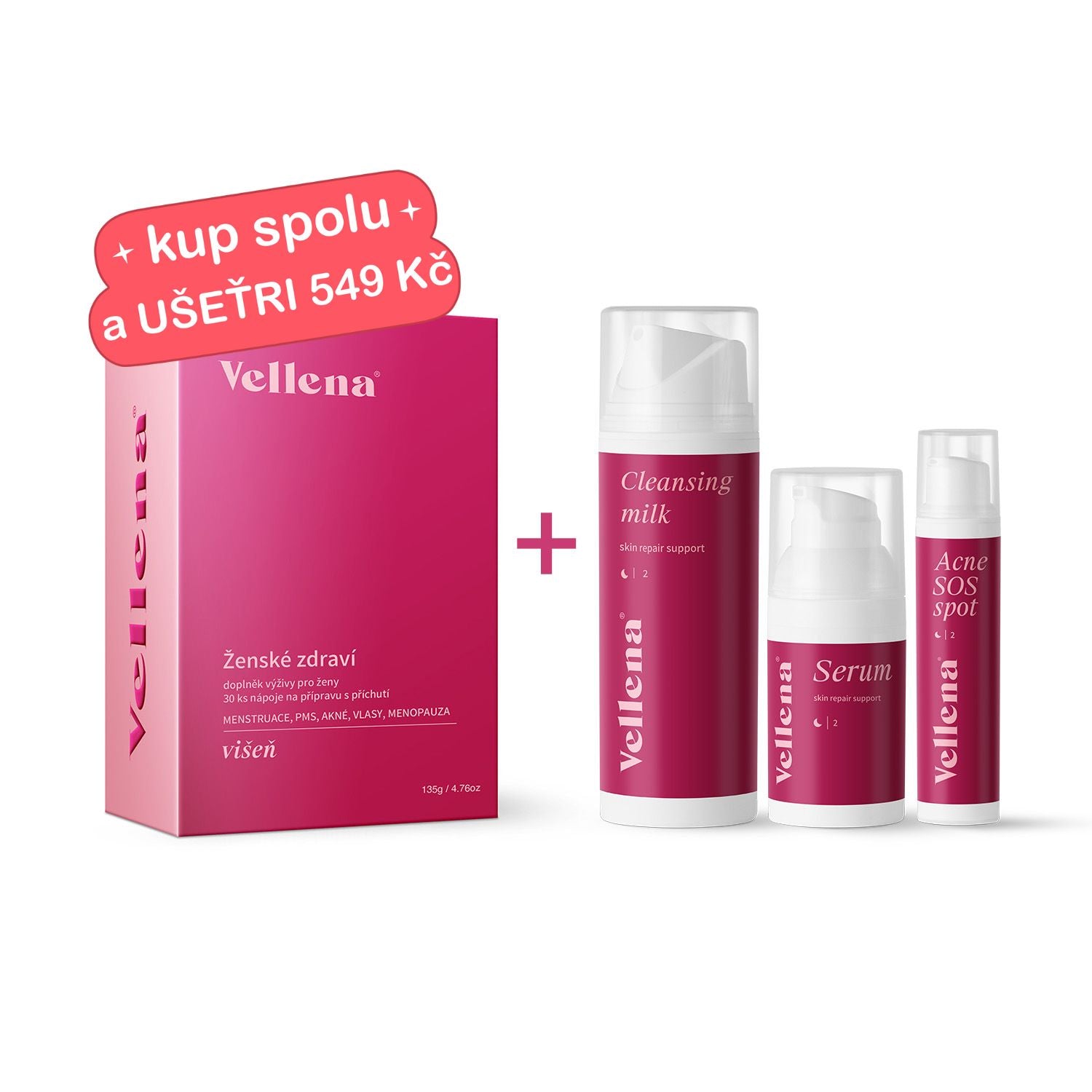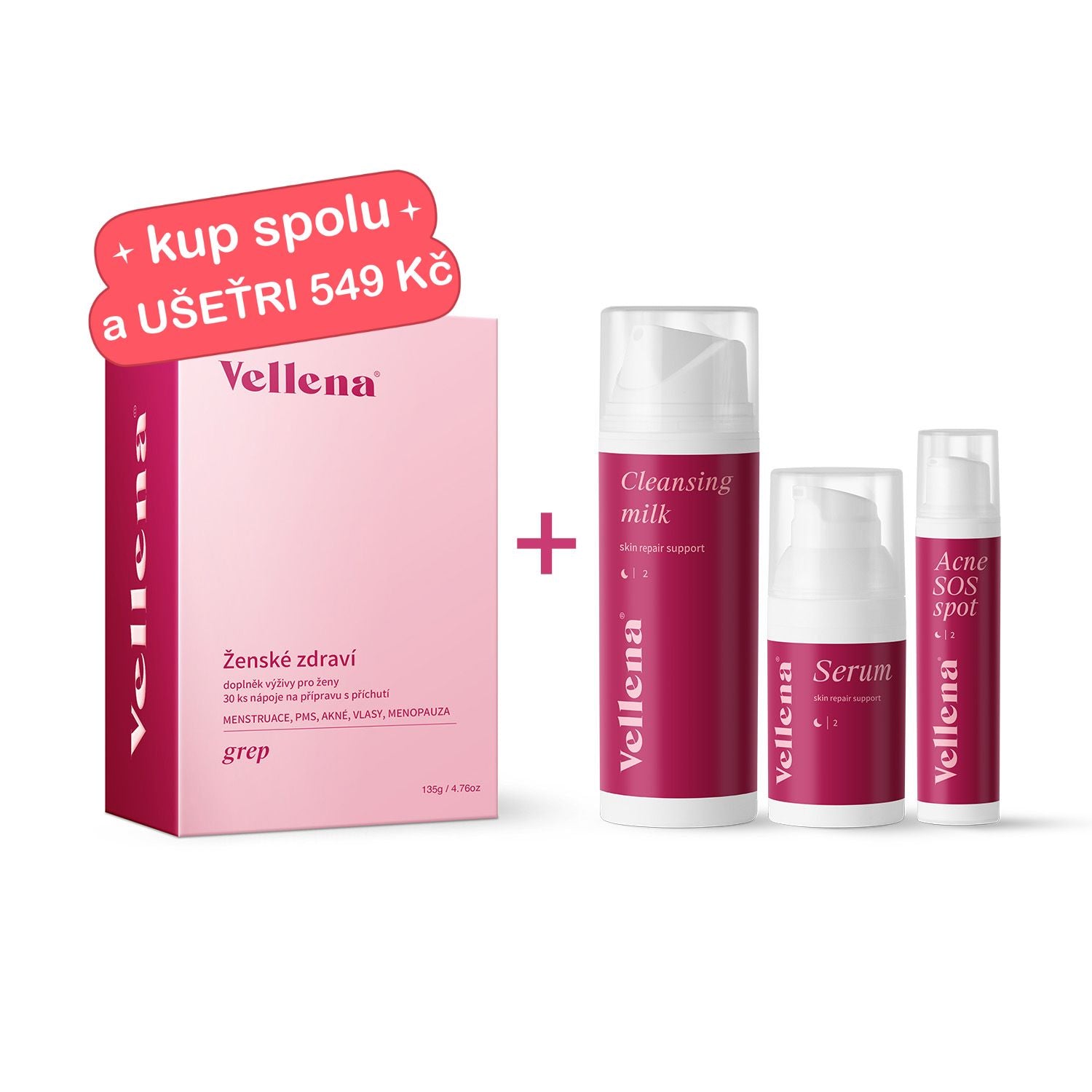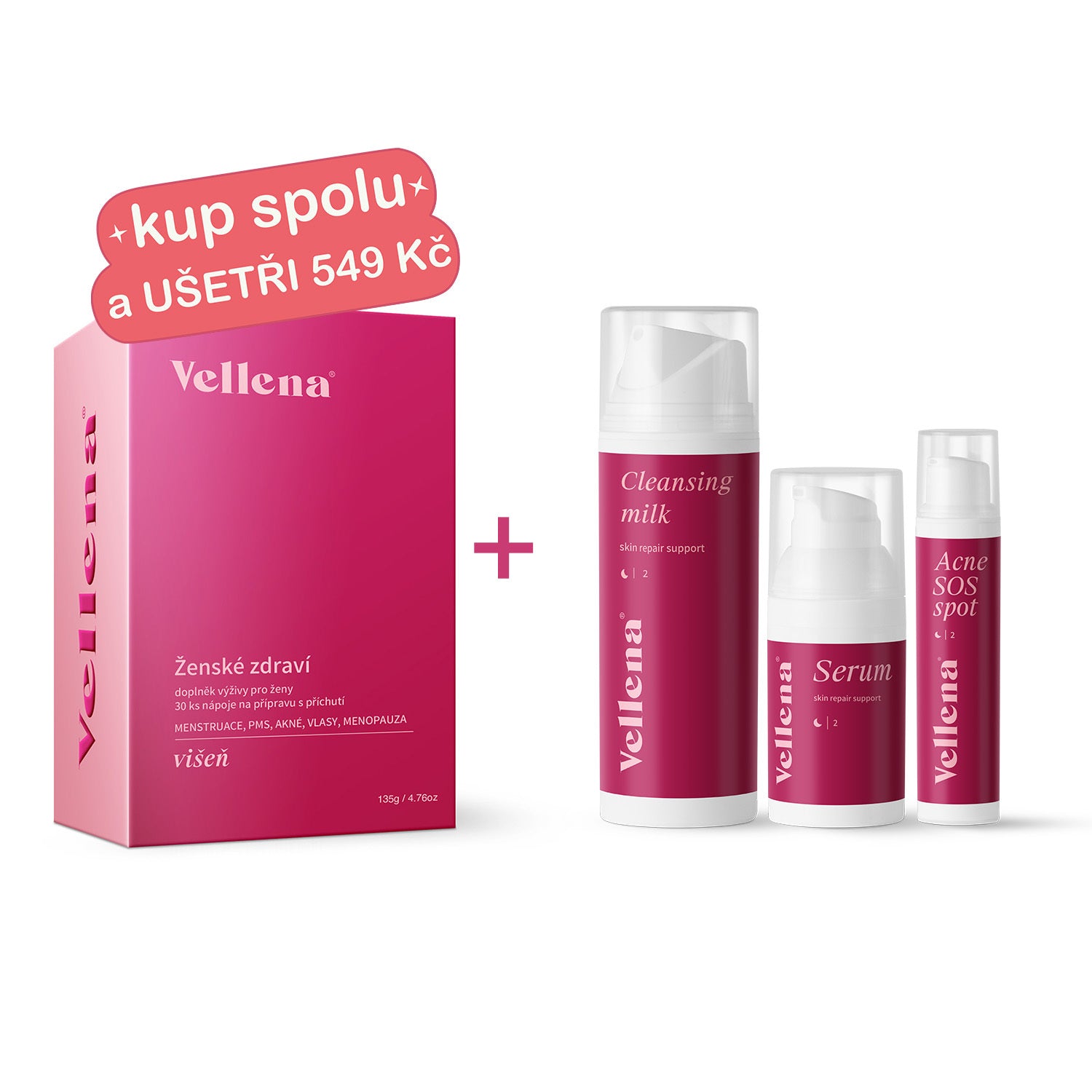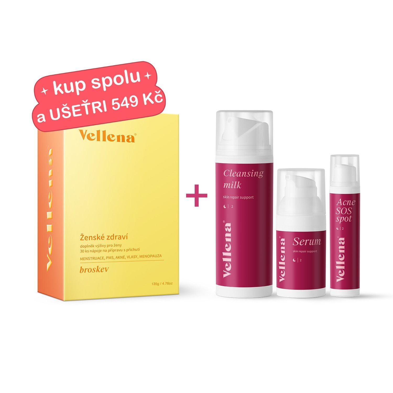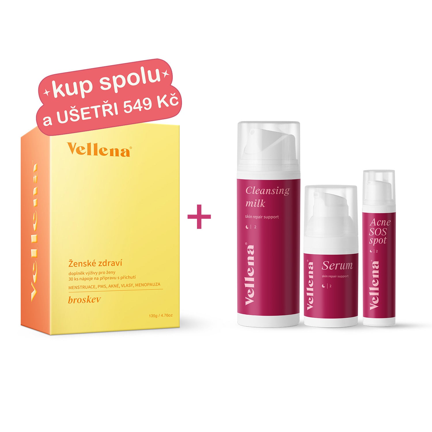Díky jedinečné kombinaci Vellena nápoje a Kosmetiky podle ženského cyklu bude o tvou pleť postaráno jak zvenčí, tak zevnitř.