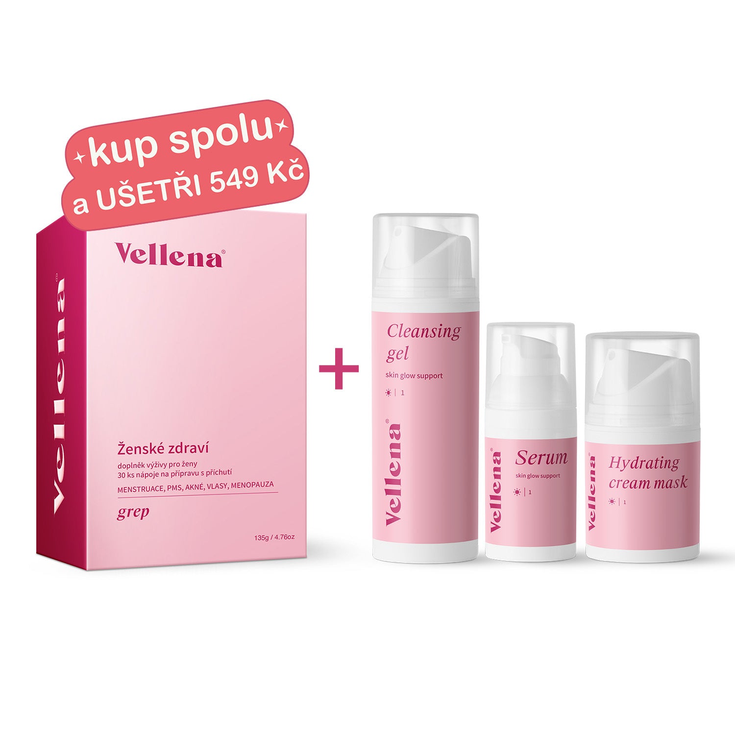 Díky jedinečné kombinaci Vellena nápoje a Kosmetiky podle ženského cyklu bude o tvou pleť postaráno jak zvenčí, tak zevnitř.