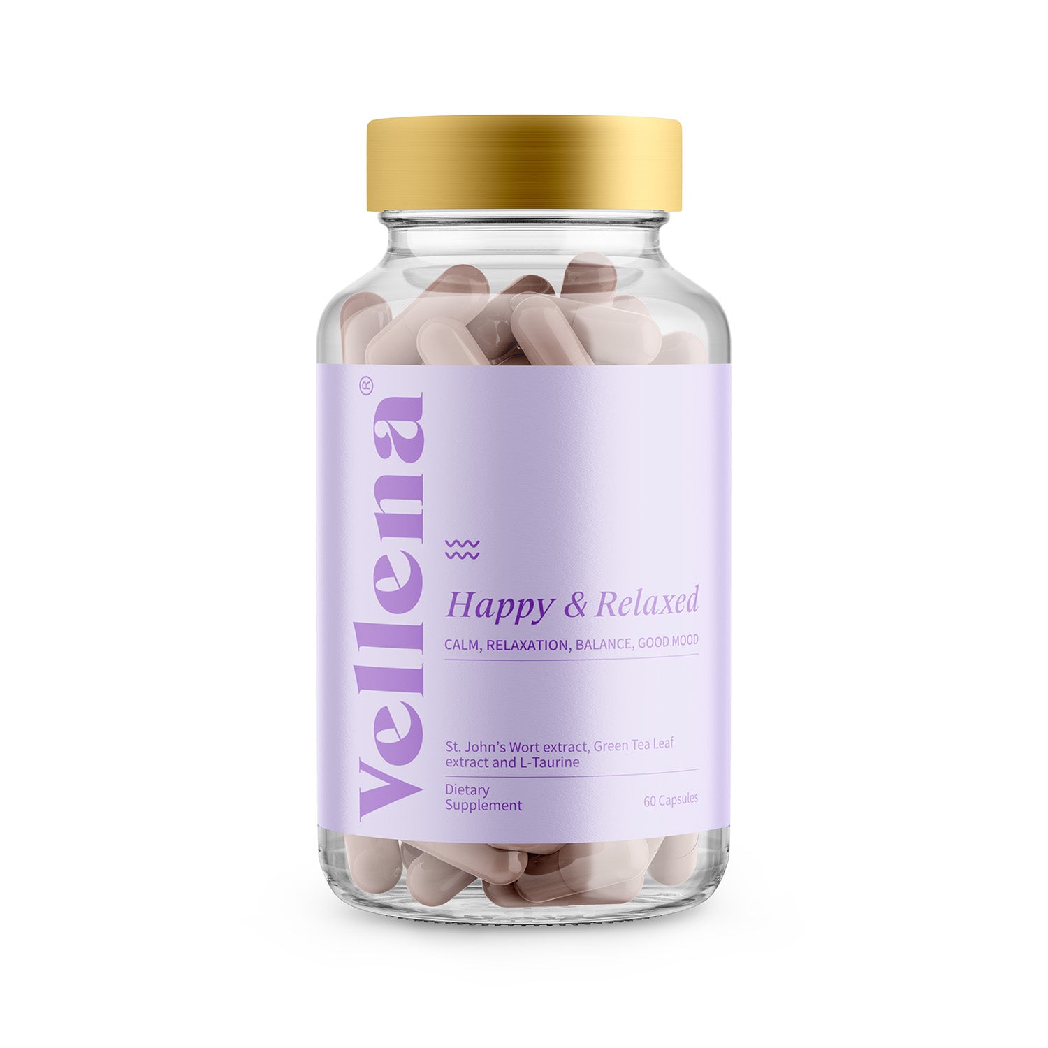 Vellena kapsle Happy & Relaxed ti pomohou zvládat stresové situace, napětí i únavu. Přírodní složení Happy & Relaxed přispívá k psychické pohodě, dobré náladě a podporuje tvorbu serotoninu – hormonu štěstí.