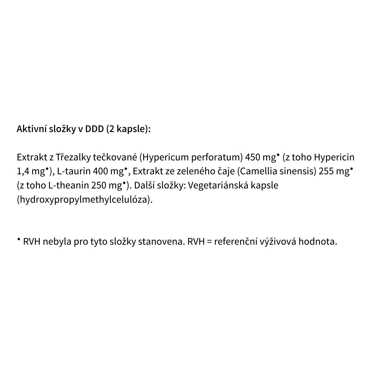 Aktivní látky: Extrakt z Třezalky tečkované, L-Taurin, L-Theanin - Extrakt ze zeleného čaje.