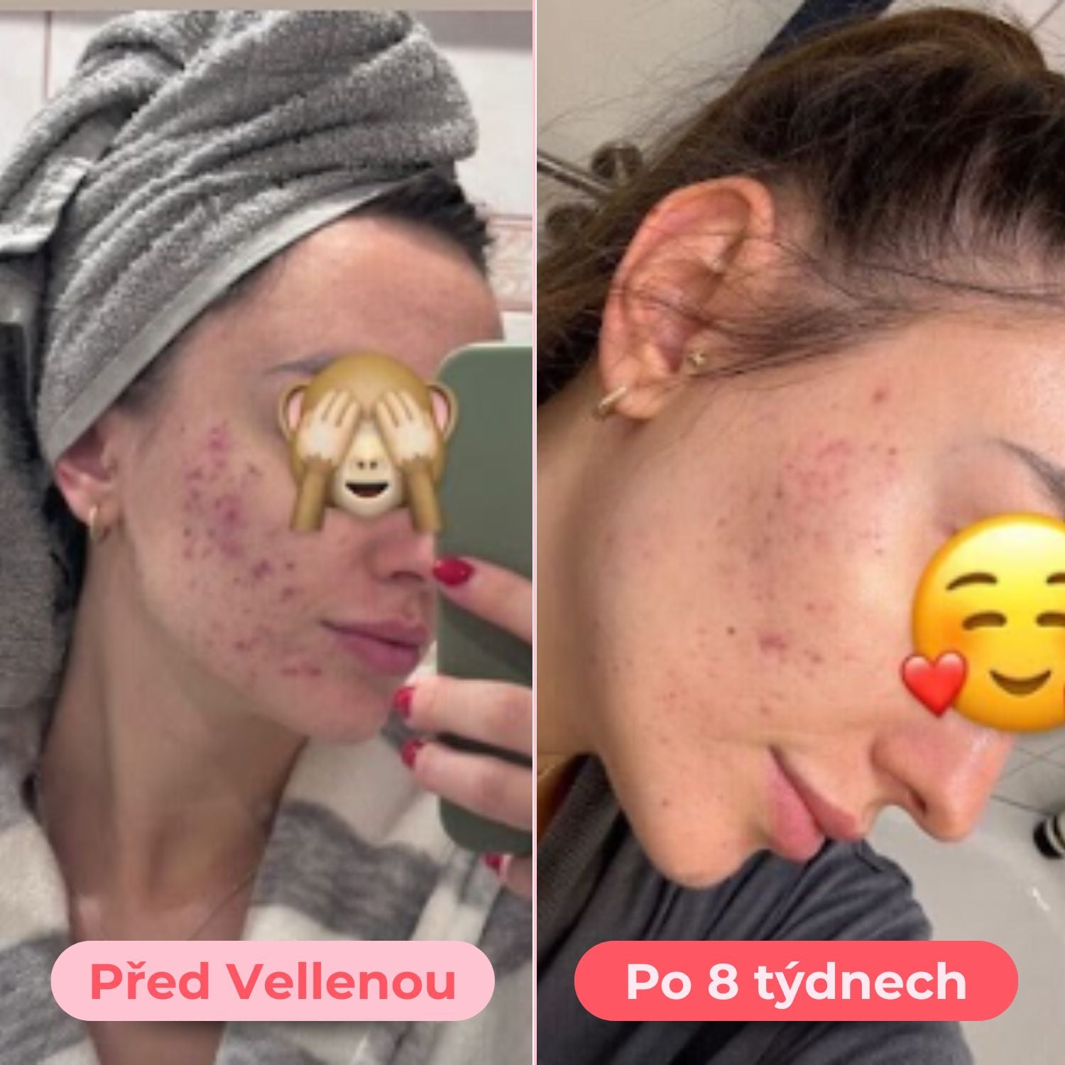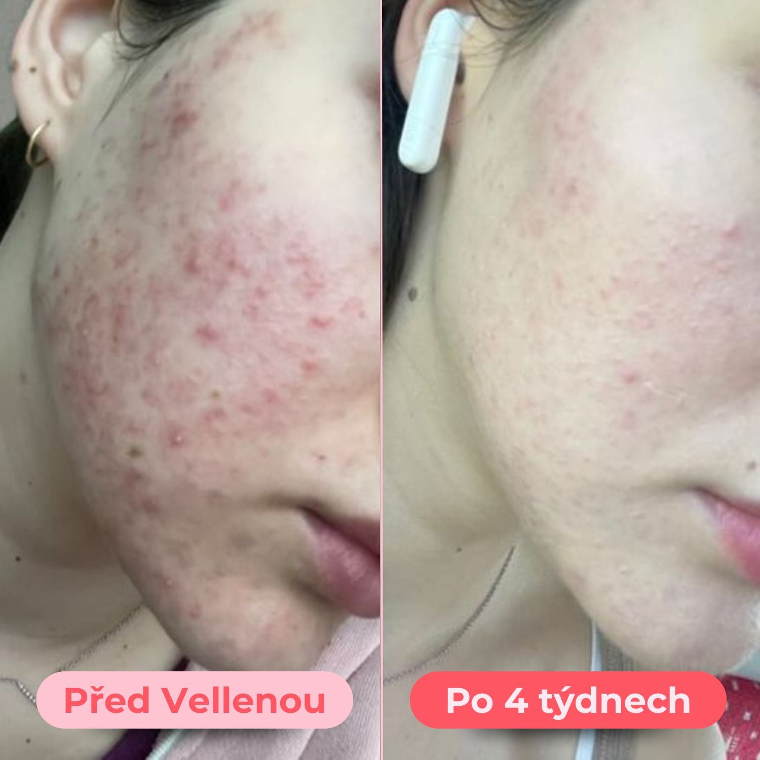 Po prvním měsíci vidím zlepšení. Pupínky nejsou tak velké a zanícené. Po vysazení na pár dní se pleť hned vrací zpátky do “starých kolejí”: pupínků přibývá, jsou bolestivé a zanícené.